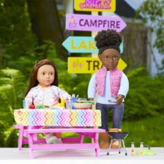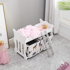 Click for More Images Classic doll bunk bed for two dolls to rest in styleIncludes a ladder, two soft padded mats with attached pillows, and a free personalization kit to add your child's nameMade with wood, MDF, and fabricOverall dimensions...