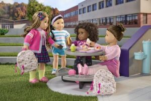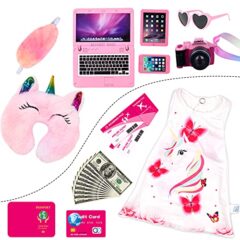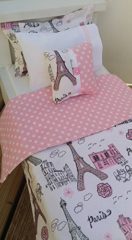 Click for More Images ? SPACE-SAVING LOFT DESIGN - Complete pink and white loft bunk bed set for 14-19 inch dolls including American Girl, Our Generation, Journey Girls, Madame Alexander, Adora, and My Life As. Features upper loft bed with ladder...