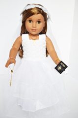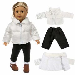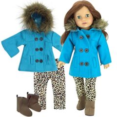 Click for More Images ? COMPLETE 6-PIECE 18" DOLL PRINCESS COLLECTION - Two stunning outfits: Teal ice princess ballgown with sparkly snowflake shoes + Blue royal dress with faux suede boots, cape & shirt for 18" dolls? PREMIUM FAIRYTALE...