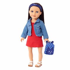 Click for More Images INCLUDED: Set includes one blue striped skirt and one white tank top for 18 inch dolls.QUALITY DETAILS: A high-waisted knee length blue and white striped skirt with elastic waistband features a silkscreened rainbow dripping...