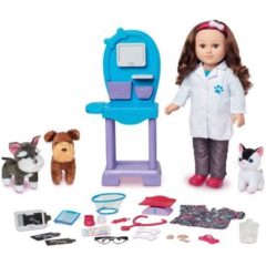 Click for More Images ? PERFECT 18-INCH DOLL ACCESSORY: This adorable brown plush puppy is perfectly sized for 18" dolls like American Girl, Our Generation, Adora, My Life As, and Journey Girls. Complete with pink leash, matching collar, and...