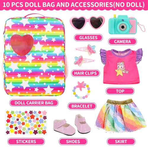 Click for More Images Package Content: this is a 18 inch doll suitcase set including doll travel bag, doll skirt, doll headdress, doll shoes, doll sunglasses, doll backpack and unicorn; Please note that the doll is not included in the...