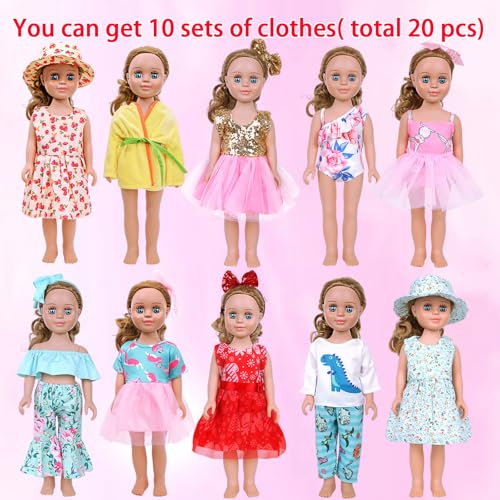Click for More Images ?Package included?10 sets doll clothes and accessories for 18 inch doll,including Dress,T-shirts,Shorts,Swimsuits which perfect fit for 18 inch girl doll.Dolls and Doll Shoes are Not Included.?Different Style? 18 inch doll...