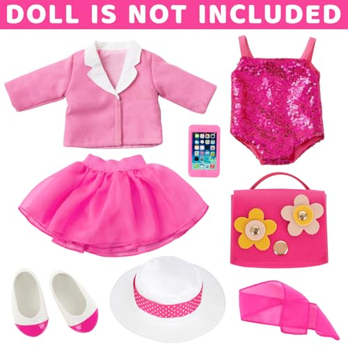 Click for More Images ?11-Piece Complete Set??Includes 6 dress-up outfits (tops + skirts) + 1 unicorn pajama set (top & pants) + 1 hair clips.Note: Display dolls/shoes in images not included?Universal 18-Inch Fit??Designed for standard 18 inch...