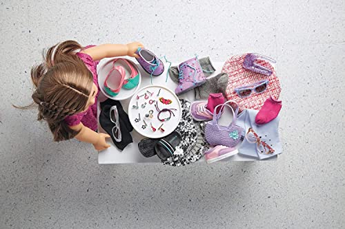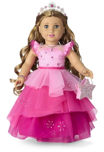 Click for More Images 4-Piece Clothing Set: Shoot for the stars with the Starlight Delight outfit for 14-inch dolls! (Dolls sold separately).Radiant Features: Includes a pink sequined dress, high-top sneakers, elastic bow, and star...