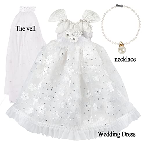Click for More Images ? Gorgeous Bride Set ? A romantic 18'' Doll Wedding Dress, a Long White Veil, came with a beautiful little pearl necklace that you weren't expecting. Pls Note that dolls are not included.? Design At First Sight ? The...