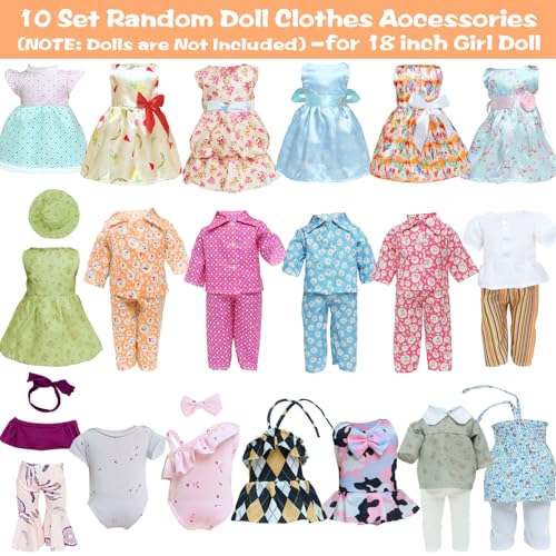 Click for More Images Random Package includes: 10 sets handmade styles 18 inch girl doll clothing and accessories, skirt, top & pant, outfit, swimwear, kids can mix and match for hours of fun (Dolls and Shoes are Not Included)Surprised 18 inch...