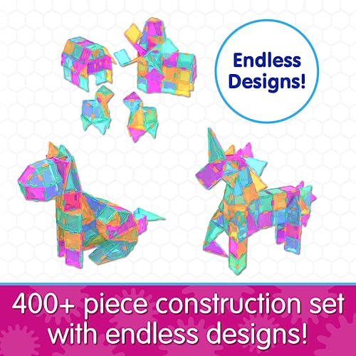 Click for More Images KEY Features - The Techno Tiles Super Set Pastel Edition NO Magnets, multiple-sized geometric shapes, and 2 and 4-way connectors are included—everything needed to build and create hundreds of cool structural designs that...