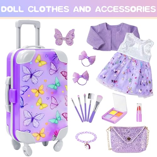 Click for More Images 18 Inch Doll Clothes and Accessories:Beautiful purple butterfly dress set, including a small jacket, as well as a shoulder bag and other accessories that can perfectly match American 18 inch dolls and other 18 inch girl...