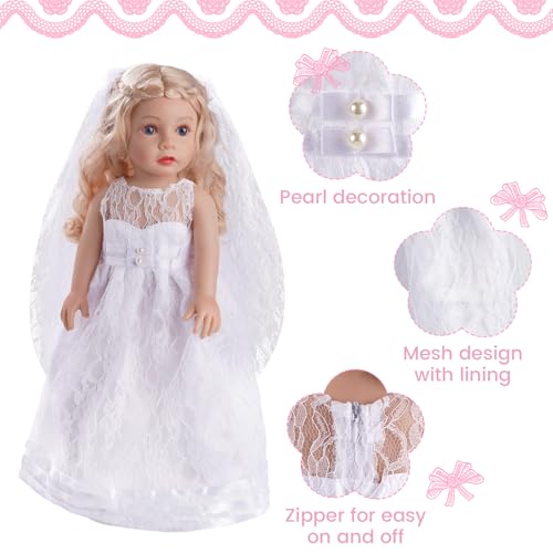 Click for More Images PACKAGE INCLUDE - Our 2 pcs baby doll wedding dress set come with a white baby doll wedding dress and a veil.BABY DOLL CLOTHES SIZE - The white satin and tulle doll wedding dress with veil is suitable for 14-18 inch baby...