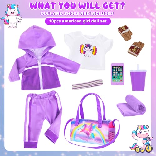 Click for More Images Package Includes: 18 inch doll sport clothes set include top pants jacket water bottle chocolate headband gym bag towel cell phoneSize Fit: 18 inch girl doll clothes are tailored for 18 inch dolls, the cut is...