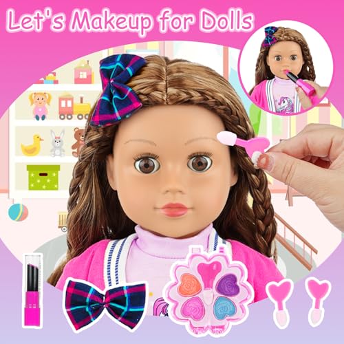 Click for More Images 18 Inch Doll Clothes And Accessories Includes: 2-Pieces Doll Jumpsuit, Gauze skirt, belt, stickers, hair clips, bracelets, eyeshadow, lipstick, blush, sunglasses(Doll & Shoes Not Included)UNIQUE DESIGN: Our 18 inch doll...