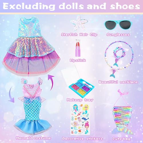 Click for More Images 18 Inch Doll Clothes and Accessories:Beautiful mermaid dresses,messenger bag and other accessories can perfect fit american 18 inch doll and the other 18 inch girl dolls(Doll and Shoes Not Included)2 Pieces beautiful...